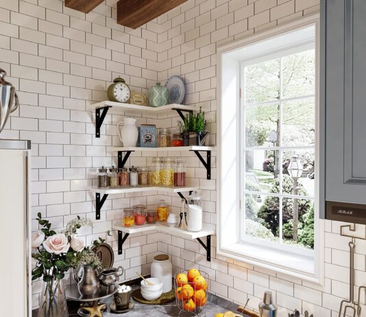 Corner shelves on the wall